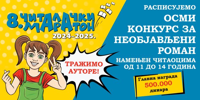 I ove godine, osmi put zaredom, Izdavačka kuća Klett raspisuje konkurs za neobjavljeni roman za mlade čitaoce od 11 do 14 godina u okviru društveno-odgovorne akcije Čitalački maraton. Konkurs je otvoren do 01. jula 2024. godine, a pravo na učešće imaju domaći autori koji pišu za decu navedenog uzrasta. Stručni žiri koji čine Dragana Ćećez-Iljukić, profesorka srpskog jezika i književnosti, Petar…