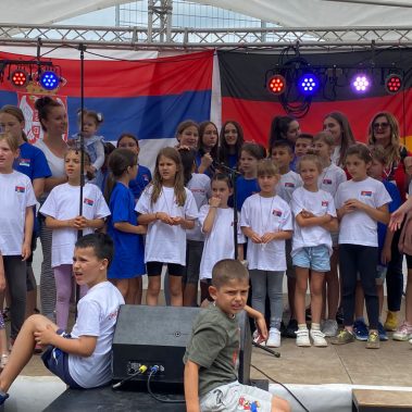 Nakon tople dobrodošlice, koordinatorka se zahvalila domaćinima na predivnom ambijentu i na gostoprimstvu, a potom uputila iskrene reči svoj deci srpske dopunske škole. „Draga deco, ponosni smo na vas. Vaša iskrena ljubav prema otadžbini koju širite, nam svedoči da ste utrli put ljubavi prema otadžbini i da je, ma gde bila, uvek u srcu nosite. Sve Milice, Lazari, Jelene, svi Dragani i Radovani – volite svoj jezik i svoju otadžbinu, jer oni imaju samo vas“, završila je pozdravni govor Tatjana Popović.