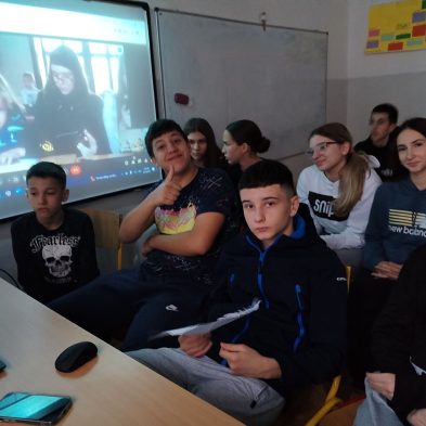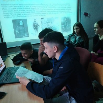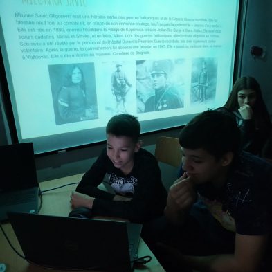 Muški deo ekipe iz Nušića-Stefan, Andrija, Vlada i Danilo su svojim drugarima na francuskom jeziku kroz prezentacije pokazali zašto se Srbija ponosi Milunkom Savić, Nadeždom Petrović, Desankom Maksimović i Milevom Marić Ajnštajn, a zatim je Viktor iz Buržea na srpskom jeziku recitovao pesmu „Strepnja „ Desanke Maksimović. Sledili su povici podrške sa obe strane ekrana “Bravooooo!!!!!“