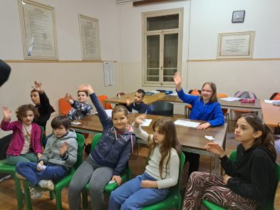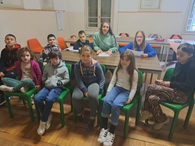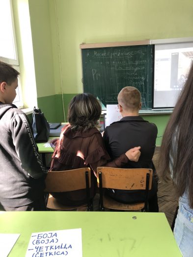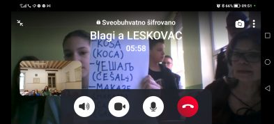 U drugom delu časa otvorila se konverzacija na oba jezika. Bilo je priča o školi, omljenim školskim predmetima, o znamenitim ličnostima iz Leskovca i Vićence i o našim gradovima.