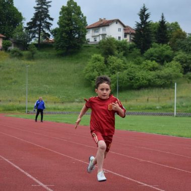 Tako je i bilo u 10 h kiša je prestala i naš kros je počeo. Zviždaljka je oglasila start prve trke na našem gradskom stadionu. Ove godine pravo učešća su uzeli i dječaci i djevojčice uzrasta 2,3,4 godine oni su bili naši najmlađi i najslađi učesnici. Pobjedu kod djevojčica je odnijela Božica Čeremidžić, a kod dječaka Mihajlo Košarac.