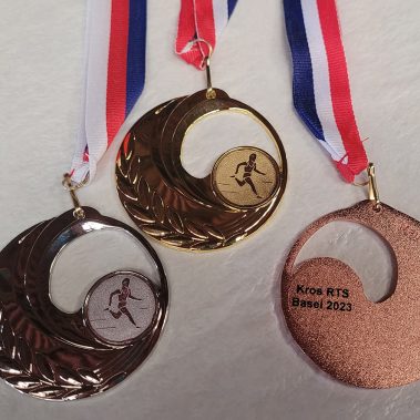 Za osvajače prva tri mesta obezbeđene su medalja sa motivnom trkača i natpisom Kros RTS, Bazel, 2023.