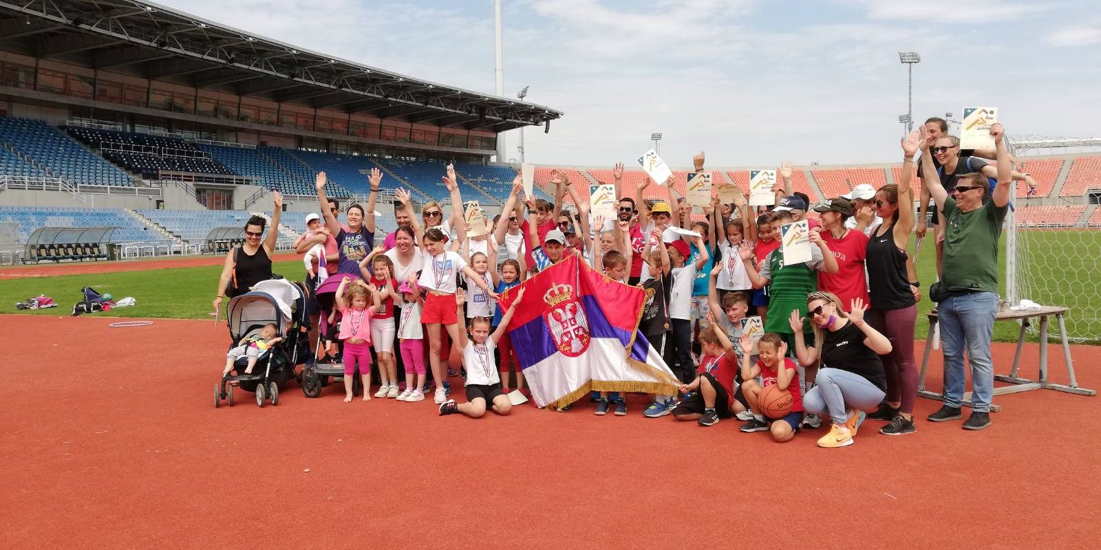 Pre početka takmičarskog dela, nakon zagrevanja, svi učenici i roditelji su trčali zajedničku trku.