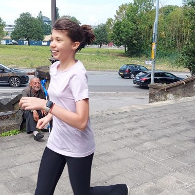 Dakle, mi smo imali osam učesnika, pet djevojčice i tri dječaka. Tri učenice su treći razred, a jedna drugi. Djevojčica, koja je drugi razred je trčala sa drugaricama iz razreda dvjesto metara, zatim su ove dvije nastavile još, dodatnih, 100 metara . Tako je isto bilo i za dječake. Jedan je prvi, drugi drugi, a treći treći razred. Zajedno su trčali i napuštali su gros nakon određenih, pređenih, zadatih metara. Njima se pridružila i jedna djevojčica, koja je željela da trči sa dvojicom svoje braće.