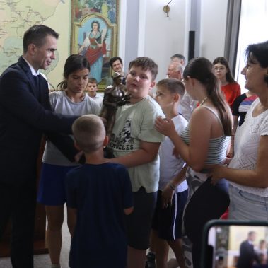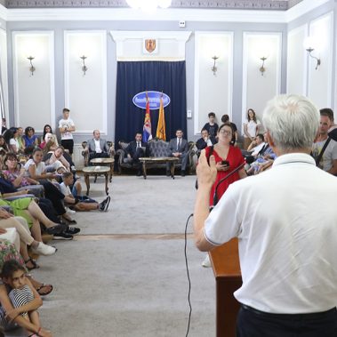 Jutro smo započeli sportskom radionicom. Posle doručka odlazimo u Gradsku kuću na proglašenje najboljih u dijaspori. Posetio nas je vršilac dužnosti ministra prosvete Đorđe Milićević i uručio trofej najuspešnijem organizatoru Krosa RTS-a „U dijaspori“ , a to je ove godine dopunska škola srpskog jezika iz Slovenije. Vd ministar nam se obratio sa rečima: