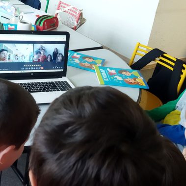 Na početku časa prvo su se predstavili učenici iz dopunske škole u Miluzu na srpskom i francuskom jeziku, pa učenici iz Zaječara na francuskom i srpskom jeziku. Saznali smo imena novih drugara, u koju školu i koji razred idu, šta vole: sport, boje, hranu i koju muziku slušaju.