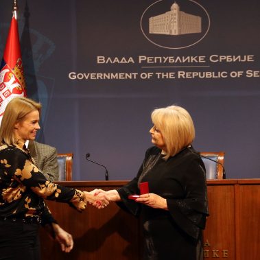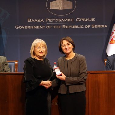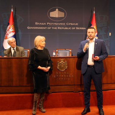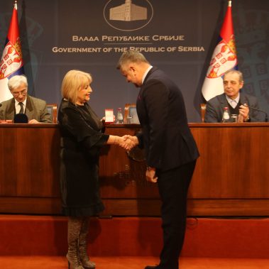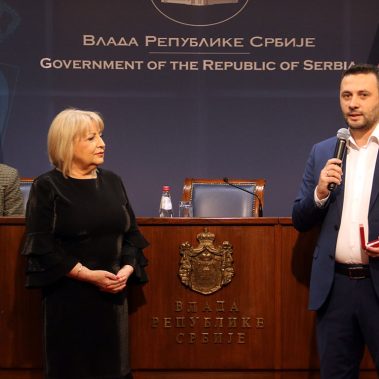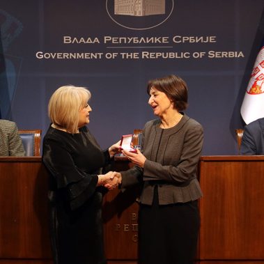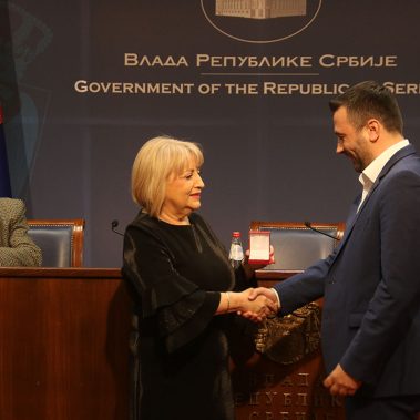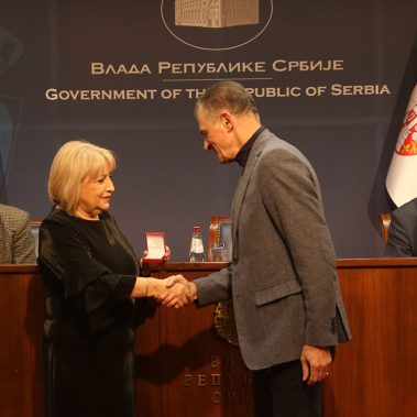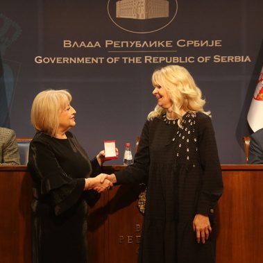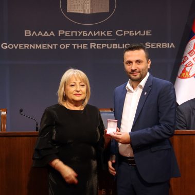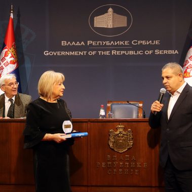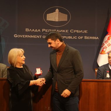 Srebrna i zlatna znamenja laureatima je uručila ministarka prosvete prof. dr Slavica Đukić Dejanović.