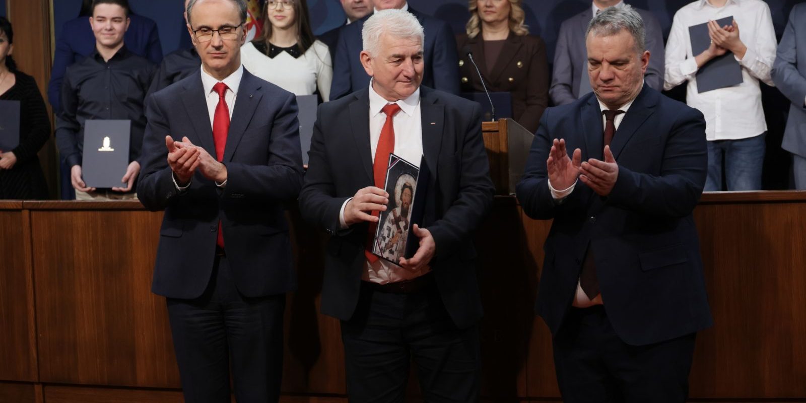 Svetosavsku nagradu danas su primili i stožeri „Blaga Srbije“ i Krosa RTS-a – Veliša Joksimović, rukovodilac Školske uprave Požarevac, i Ljubiša Stevanović, direktor Poljoprivredno-veterinarske škole sa domom učenika Rekovac.